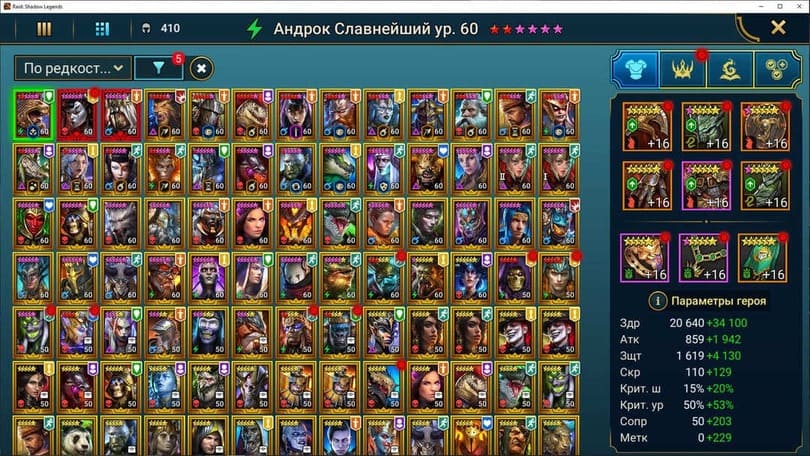 ⚡Уровень: 91 🔥Количество героев:: 410 💪Сила: 850к
